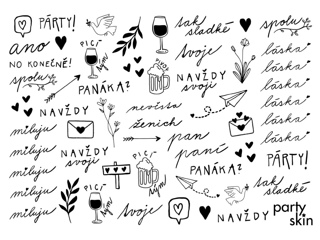 Svatební tetovačky A4 jsou jednoduchý detail, který udělá velký efekt – hlavně když z nich uděláte svatební tetovací koutek. Hosté si mohou během dne vybrat motiv, nalepit si ho jako památku a vy máte zábavu, která funguje přirozeně od odpoledne až po večerní party. Tetovací koutek je navíc skvělý i pro focení – motivy se krásně chytají na fotkách a propojí celou svatbu jedním „vibem“.